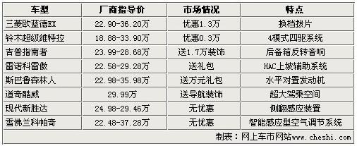 今天我們?yōu)榇蠹規(guī)砹?款SUV車型,它們的售價區(qū)間都在20-30萬左右,與部分國產(chǎn)加價SUV處于同一價格區(qū)間,姑且不說它們的市場有多大,單憑它們都是純進口這一項就表露出明顯的優(yōu)勢。況且,它們還有一個更為有利的優(yōu)勢,就是不加價!作為汽車銷量的直接影響者,我們首先就不能讓加價這種“潛規(guī)則”有生存的機會。