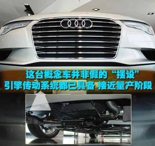 通常來展示在站臺(tái)上的概念車大都只是一個(gè)空殼子而已,出于好奇心我也趴到車底一看究竟。事實(shí)上這臺(tái)概念車已經(jīng)被裝上了動(dòng)力系統(tǒng)和懸架系統(tǒng),加滿油、啟動(dòng)引擎就可以開動(dòng)?上У氖乾F(xiàn)在它只能乖乖的趴在展廳里。動(dòng)力系統(tǒng)上歐洲市場(chǎng)會(huì)搭載與全新A8或是Q7相同的柴油引擎以及汽油引擎。