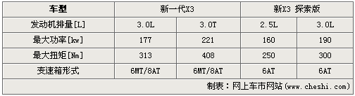 動(dòng)力部分,老款X3搭載兩款自然吸氣發(fā)動(dòng)機(jī),排量分別為2.5L和3.0L。其3.0L發(fā)動(dòng)機(jī)最大功率輸出達(dá)到190千瓦,最大扭矩達(dá)到300N.m。新一代X3共搭載兩款發(fā)動(dòng)機(jī),排量分別為3.0L和3.0T。3.0T發(fā)動(dòng)機(jī),新X3搭載心臟最大功率輸出達(dá)到221千瓦,最大扭矩達(dá)到408N.m。全新的動(dòng)力技術(shù)帶來(lái)了更加爽快的動(dòng)力感受。
