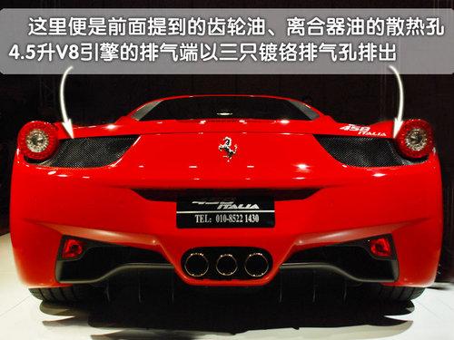 在458Italia的車(chē)尾兩側(cè),同樣分別設(shè)計(jì)有兩處通風(fēng)口,當(dāng)氣流最終達(dá)到車(chē)尾的時(shí)候458Italia的設(shè)計(jì)者再一次將氣流轉(zhuǎn)變?yōu)橛幸嬗邶X輪油和離合器油散熱的氣流,從車(chē)尾將散熱器的熱量帶走。
