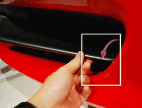 轉(zhuǎn)到車(chē)頭的上方您會(huì)發(fā)現(xiàn)在458Italia的大燈一側(cè)會(huì)有一個(gè)隱藏的通風(fēng)口,這里的設(shè)計(jì)能夠讓從車(chē)頭過(guò)來(lái)的氣流在經(jīng)過(guò)這里的時(shí)候進(jìn)入通風(fēng)口,使其變?yōu)橐嫔崞饕约扒拜唲x車(chē)系統(tǒng)的冷卻氣流,類(lèi)似這樣的巧妙設(shè)計(jì)還有很多。