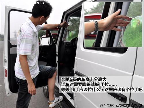 打開車門后我們發(fā)現(xiàn),奔馳G級由于離地間隙比一般的SUV還要高出不少,因此上車的動作難度也隨之加大了。不過幸好設計了車身側(cè)踏板,但如果能在A柱上安裝一個拉手,就能讓駕駛者感到更順心一些。