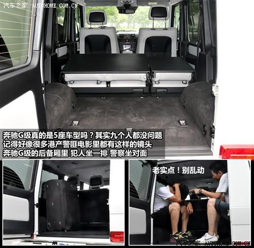除了能載物外,奔馳G級(jí)后備廂兩邊的凸起正好可以坐下每邊兩個(gè)人,不過(guò)這樣上路可是法律所不允許的,所以像上圖那樣警察押送犯人的情景還是僅限于靜態(tài)比較好。而當(dāng)掀起整個(gè)后排座椅后,寬大的后備廂足以運(yùn)載冰箱或洗衣機(jī)這類的大件物品,出色的垂直空間也使物品的高度不再受太多的限制。