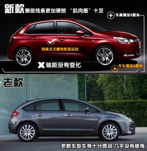 一般意義上來(lái)說(shuō),區(qū)別一款車(chē)型是不是小改款車(chē)型主要看是否只是改動(dòng)了車(chē)身前后的造型。而全新的雪鐵龍C4的絕對(duì)可以稱得上新車(chē),通過(guò)車(chē)身側(cè)面的對(duì)比我們可以清楚的看到,在C柱部分已經(jīng)進(jìn)行了重新設(shè)計(jì),而側(cè)面不對(duì)稱的交叉腰線在彰顯了個(gè)性的同時(shí)也提升了整車(chē)造型的質(zhì)感。