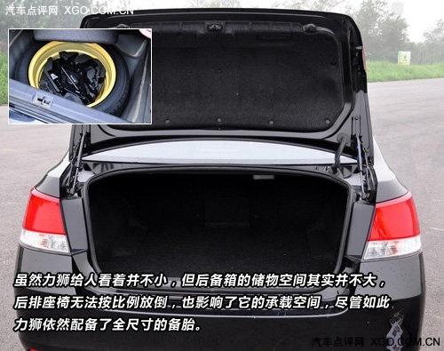 車內(nèi)有有一處超大的眼鏡存放處,這么大的眼鏡盒還是真的很少見,不僅能放下普通眼鏡,按尺寸看,連雷鵬的大墨鏡放在里面也應(yīng)該沒有什么問題,內(nèi)置絨布,以防止鏡面與內(nèi)壁的摩擦。雖然眼鏡盒超大,可該大的地方卻并不如人所愿,在外觀上和內(nèi)飾上,力獅看著都不小,但偏偏后備箱的儲物空間卻不大,后排座椅也無法按比例放倒,同樣影響了承載空間。盡管后備廂空間不是那么的大,但力獅依然配備了全尺寸的備胎,如果換成非全尺寸的話,空間應(yīng)該也會得到些許的提升吧。