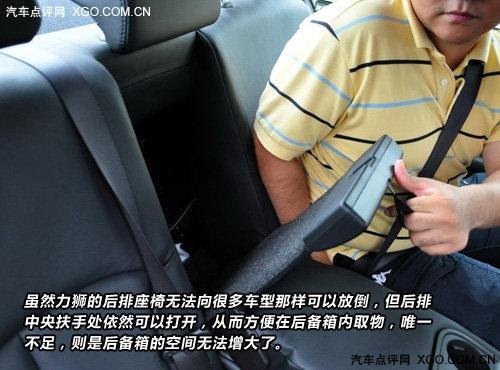 當(dāng)然如果排除后排的第三個(gè)人,一個(gè)人或者兩個(gè)人坐在后面,還是很舒適的,后排的中央扶手不僅寬大,而且高度適中,水平放置后,位于杯架后的部分真皮包裹,十分柔軟,肘部放在上面的角度也合適,即使杯架內(nèi)放置了水瓶,乘客的胳膊也不會(huì)受到絲毫影響。更不會(huì)出現(xiàn)乘客為了胳膊支撐在扶手上而采取一個(gè)很不舒服的坐姿的情況。力獅的后排座椅無(wú)法放倒,卻可以從中央扶手的靠背處打開(kāi),方便從后備箱內(nèi)取物。