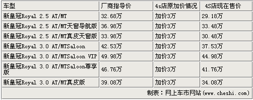 在豪華私家車市場,針對中國消費(fèi)者偏好“大車”的需求,各大主力車型進(jìn)行了加長設(shè)計,一汽豐田旗下旗艦車型-------日系的皇冠家族也不例外,加長新皇分別搭載了2.5L、3.0L和4.3L引擎,共計9款車型,售價32.68萬-89.95萬元。整體性能、科技含量及豪華感大幅提升。根據(jù)網(wǎng)上車市價格監(jiān)測系統(tǒng)顯示:今日新皇冠再次出現(xiàn)了較高的價格浮動,購買3.0L全系可享受到50000元的優(yōu)惠現(xiàn)金。具體車型行情如下: