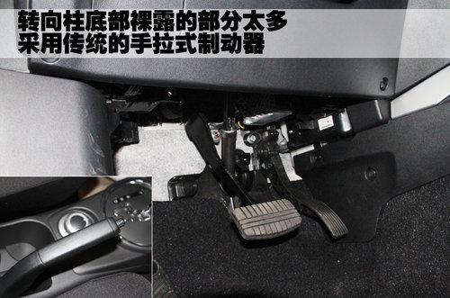 三菱ASX勁炫的轉(zhuǎn)向柱底部裸露的部分太多,沒有周密的防護(hù)板保護(hù)措施,剎車和油門踏板采用橡膠材質(zhì)包裹,起到防滑的作用。這款新車采用傳統(tǒng)的手拉式制動器,更高端的電子式手剎并沒有出現(xiàn)在這款車上。