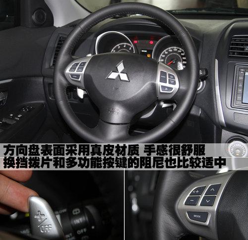 三菱ASX勁炫的方向盤表面采用真皮材質(zhì)包裹,手感非常舒服,而且這款車的方向盤配備了多功能按鍵和換擋撥片,阻尼適中,操作也很是便利。另外,三菱ASX勁炫方向盤兩側(cè)的控制桿模具做工都比較不錯,質(zhì)量水平非常到位。