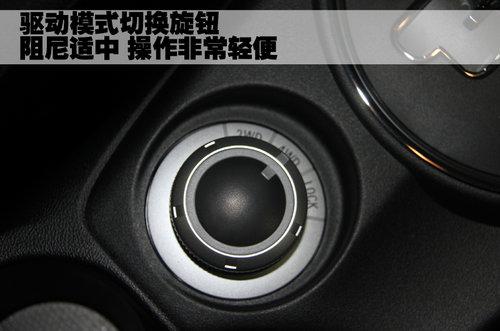 三菱ASX勁炫采用的是分時四驅(qū)系統(tǒng),在車內(nèi)可以通過圖中所示的旋鈕選擇調(diào)節(jié)驅(qū)動模式,這個控制調(diào)節(jié)旋鈕設(shè)計的非常小巧,阻尼適中,操作非常輕便。