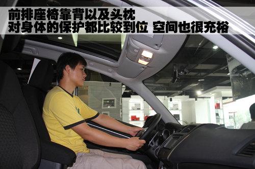 三菱ASX勁炫的前排座椅對于背部的支撐與包裹十分到位,同時前排座椅坐墊長度也很合適,對大腿部分的支撐充足,同時這款新車前排駕乘空間比較寬裕。