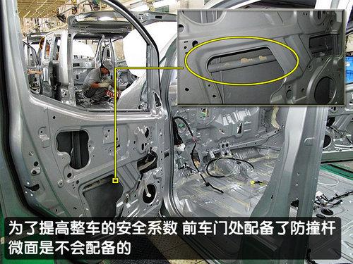 在車輛進(jìn)行組裝時,我們發(fā)現(xiàn)到在前車門內(nèi)部配有一根很粗壯的防撞桿,防撞桿加強了車身在發(fā)生碰撞時的車身強度,這個不拆下車門板是看不到的。