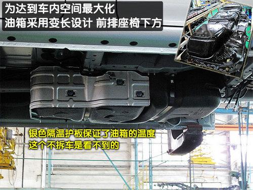 在總裝車間里我們發(fā)現(xiàn)了NV200的油箱,NV200為了更好的是車內(nèi)空間最大話,采用了扁平的油箱設(shè)計,油箱位于前排座椅下。在油箱前側(cè)還發(fā)現(xiàn)了隔溫護(hù)板,以保證油箱的溫度。相比這個是不來生產(chǎn)車間是看不到的。