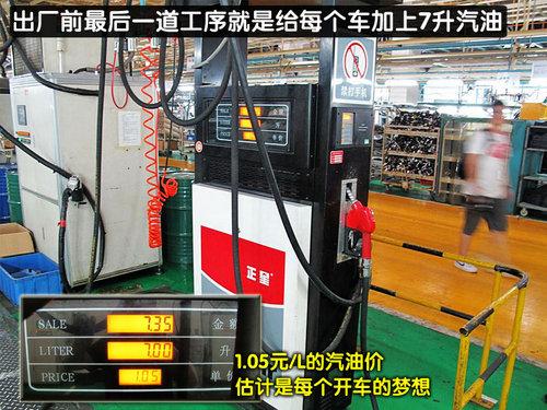 在車(chē)輛組裝完畢后,每輛車(chē)型將會(huì)添加7升汽油。從顯示屏可以看到,在這里每升汽油的價(jià)格僅為1.05元,這樣的價(jià)格相信一定是每位車(chē)主的夢(mèng)想。