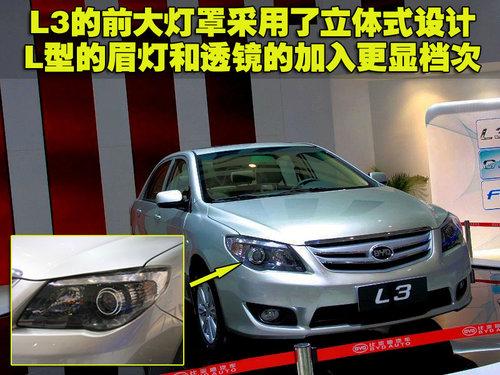 比亞迪L3的車燈設(shè)計(jì)也頗有特點(diǎn),L型的鍍鉻燈眉一方面代表了L3的名字,也與中網(wǎng)的鍍鉻條相呼應(yīng)。立體式車燈罩也為前臉增添了一絲生氣,全系配備透鏡,夜間使用帶來更佳的照明聚光效果。