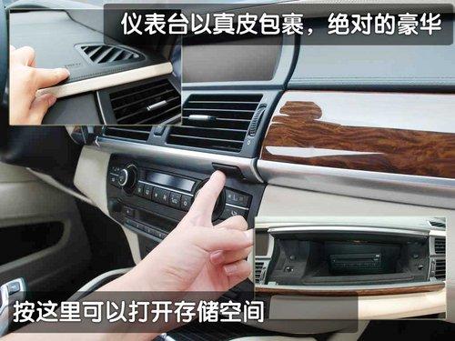 在內飾部分寶馬X6混合動力版車型也有著細微的不同,儀表臺的整體感覺與寶馬家族的其它車型造型統(tǒng)一,略向駕駛員一側偏轉的儀表臺照顧到了駕駛員在駕車當中的操作便捷性。儀表臺整體材料為真皮材質,而鋁金屬裝飾條顯得更加動感十足,但第一感覺始終讓人誤以為是寶馬X5的內飾。