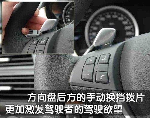 寶馬X6是其X系列中唯一標(biāo)準(zhǔn)配置帶換檔撥片方向盤的車型。由于換擋撥片集成在方向盤上,所以無論方向盤處于什么位置,駕駛者都可以用換檔撥片平滑而舒適地進(jìn)行升降檔。用方向盤上的多功能按鈕還可以快速操縱電話和音響系統(tǒng),使駕駛者將注意力集中于駕駛,駕駛者還可以根據(jù)個人偏好對方向盤上的兩個按鈕進(jìn)行單獨(dú)編程。
