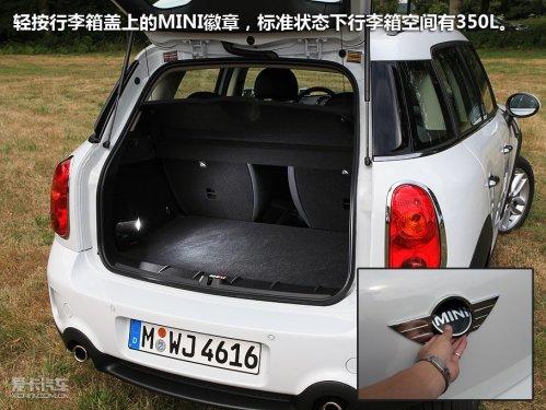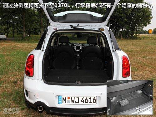 既然廠方說Countryman是最實(shí)用的MINI,那么行李箱空間肯定會(huì)成為用戶仔細(xì)考量的一處。輕按行李箱蓋上的MINI徽章,標(biāo)準(zhǔn)狀態(tài)下行李箱空間有350L,通過放倒座椅可擴(kuò)容至1170L,在行李箱底部還有一個(gè)隱藏的儲(chǔ)物格。怎么樣,夠用了吧!
