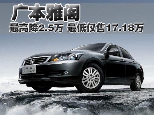 當(dāng)提到中級車型大家也許會不約而同的想起廣本雅閣,新雅閣憑借其大氣的外觀、舒適的空間和豪華的配置對于中級轎車市場的構(gòu)成起到了舉足輕重的作用。去年,廣汽本田又對第8代雅閣進(jìn)行了小改款,對原來車型的配置有一定程度提升,部分車型增加了智能鑰匙和后遮陽板等配置,提高了雅閣整體車型的性價比。近日根據(jù)網(wǎng)上車市價格監(jiān)測系統(tǒng)顯示,目前雅閣現(xiàn)金最高優(yōu)惠2.5萬元,最低售價逼平17萬。具體價格以及優(yōu)惠幅度如下: