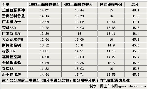 通過以上表格,我們可以看出這樣一個(gè)現(xiàn)象,12款車當(dāng)中涉及自主品牌、日韓系列和德美系列各國車型。很多人一直堅(jiān)信德美系的車要比其他兩類車要結(jié)實(shí),但事實(shí)證明他們的成績也并非那么無懈可擊。看來C-NCAP的鐵證也可以做一回流言終結(jié)者了,不過這12款車全部達(dá)到了45分以上,也就是C=NCAP五星級安全標(biāo)準(zhǔn)。至于傳說中的五星半級別,在比較常見的國產(chǎn)車中只有雅閣和CR-V達(dá)到。
