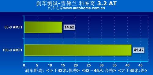 與相對(duì)不算特別出色的加速成績(jī)相比,科帕奇的剎車(chē)還是十分令人滿(mǎn)意的,在汽車(chē)之家的測(cè)試中,它只用了不到42米就將車(chē)輛從100Km/h穩(wěn)穩(wěn)停住,已經(jīng)達(dá)到優(yōu)秀的界定標(biāo)準(zhǔn)了,對(duì)于重心和底盤(pán)更高的SUV車(chē)型來(lái)說(shuō),能取得這樣的成績(jī)已經(jīng)很不錯(cuò)了。