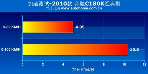 在我們對(duì)C180K的測(cè)試中,最終百公里加速時(shí)間為10.3秒,很遺憾沒有進(jìn)入10秒以內(nèi),不過這個(gè)成績依然領(lǐng)先眾多2.4L自然吸氣發(fā)動(dòng)機(jī)車型。剎車成績?yōu)?2.19米,按說算是個(gè)不錯(cuò)的成績,但是相比奔馳家族的其他兄弟,這個(gè)成績就顯得有待提高了。油耗的表現(xiàn)比較出色,8.74升/百公里的表現(xiàn)對(duì)于一款加速在10秒左右的中型車來說還是很優(yōu)秀的。
