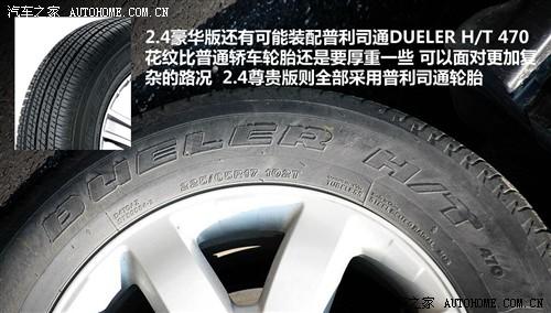 據(jù)本田廠家工作人員介紹,CR-V的2.4升豪華版會根據(jù)車輛生產(chǎn)的批次不同搭載不同的輪胎,除了上面介紹的鄧祿普GRANDTREK ST30系列之外,還可能裝配普利司通DUELER H/T 470輪胎,這款輪胎也是一款結(jié)合了公路和野外行駛能力的混合型輪胎,而在導(dǎo)航版車型上則全部使用的該產(chǎn)品。據(jù)了解,米其林輪胎已經(jīng)在2010款車型上停止使用了。