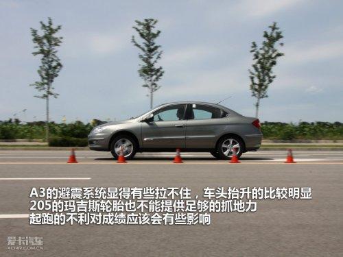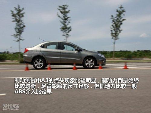 在0-100公里時速加速測試中,A3的避震系統(tǒng)有些拉不住,車頭抬升的比較明顯,205的瑪吉斯輪胎也不能提供足夠的抓地力,起跑的不利對成績應該會有些影響。其實A3的新發(fā)動機動力輸出很線性,這也是自主品牌廠商一直都青睞的調教方式,所以你無法從中找到強烈的爆發(fā)點。最終的成績也是中規(guī)中矩的,12.4秒的成績比之前的老款發(fā)動機已經(jīng)有了明顯提升。