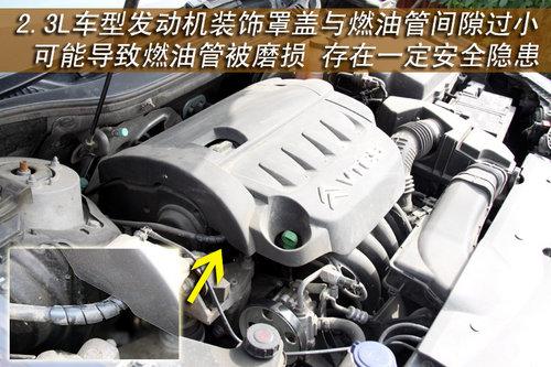 從圖中我們可以清晰的看到,發(fā)動機裝飾罩蓋確實與燃油管保護(hù)套相接觸,在車輛啟動后,由于發(fā)動機溫度較高,燃油管保護(hù)套橡膠致使有所軟化,并且發(fā)動機震動與其摩擦,可能會導(dǎo)致燃油管被磨損,存在著一定的安全隱患。