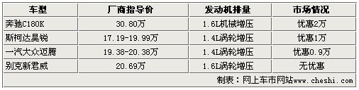 以上5款中級車當(dāng)中,斯柯達(dá)昊銳和邁騰均使用了大眾研發(fā)的1.4T發(fā)動機,新君威采用了1.6T發(fā)動機,最近上市的奔馳C180K則搭載了一臺1.6L機械增壓發(fā)動機。增壓發(fā)動機對于這4款既有面子又有里子的車來說,絕對夠用。動力輸出也不會遜色于同車型的大排量版本。