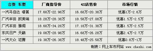 對于合資品牌車型來說,它們在價格方面更顯一定的優(yōu)勢,優(yōu)惠最大的當(dāng)屬天籟及睿翼兩款車,雖然兩者走著不同的風(fēng)格,但擁護的人群均不在少數(shù)。而以DSG、FSI為榮的邁騰,在優(yōu)惠幅度上最小,但仍有許多德系的粉絲樂于為此買單。