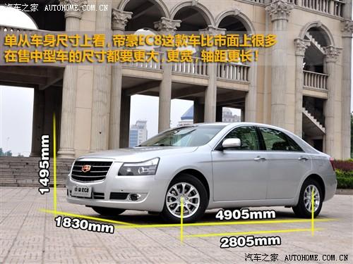 車身尺寸早就成為中國(guó)人選擇中型車的一個(gè)重要參考指標(biāo),而帝豪EC8車型的車身尺寸為長(zhǎng)*寬*高:4905mm*1830mm*1495mm,其中車身長(zhǎng)度為4905mm,這樣的尺寸在國(guó)內(nèi)在售的中型車中是相對(duì)較大的,另外2805mm的軸距也是一個(gè)相當(dāng)有誘惑力的數(shù)字。同級(jí)車中最長(zhǎng)的車身與長(zhǎng)軸距就為這款車在內(nèi)部空間上上帶來了相對(duì)富足的空間,究竟內(nèi)部空間怎樣我們下面會(huì)詳細(xì)說。