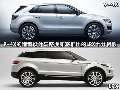從側(cè)面看,薩博9-4X的造型與路虎即將推出的最低級(jí)別SUV-LRX十分相似。前寬后窄的車(chē)窗設(shè)計(jì)、車(chē)頂部線(xiàn)條以及尾部造型都很雷同。這兩款車(chē)上市之后,將會(huì)處于同一級(jí)別,這樣的設(shè)計(jì),會(huì)讓消費(fèi)者難以抉擇。