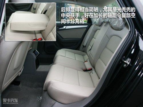 電動(dòng)座椅調(diào)節(jié)裝置也“很自然”的消失了,還好手動(dòng)調(diào)節(jié)拉桿手感不錯(cuò),可以讓人很輕松的就找到舒服的坐姿。后排座椅同樣乘坐較為舒適,而且得益于加長(zhǎng)后的超長(zhǎng)軸距,A4L政府公務(wù)版后排的腿部空間非常的奢侈。只是光禿禿的中央扶手讓人頗有些不悅,看起來(lái)非常的廉價(jià),即使在這里設(shè)計(jì)一組杯架也會(huì)加分不少。