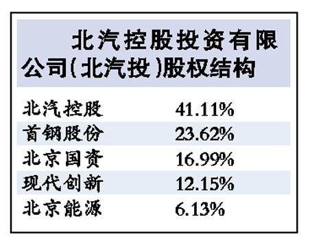 據(jù)昨天首鋼股份的投資公告,擬以其持有的北京汽車(chē)投資有限公司(下稱“北汽投”)全部股權(quán)及部分現(xiàn)金投資參與發(fā)起設(shè)立“北京汽車(chē)股份有限公司”(暫定名,下稱“北汽股份”),預(yù)計(jì)持股比例為18.31%。