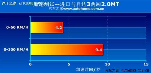 我們來(lái)看一下2.0L手動(dòng)擋馬自達(dá)3的實(shí)際性能表現(xiàn);0-100KM/h的加速時(shí)間為9.4秒,6擋手動(dòng)變速箱換擋順暢且擋位間隙很小,操作時(shí)手感很棒;不過(guò)9.4s的成績(jī)似乎沒(méi)有我們想象的出色,與福克斯、世嘉等同排量車型相當(dāng)。在緊急制動(dòng)的測(cè)試中,前懸掛面對(duì)較強(qiáng)的慣性表現(xiàn)不錯(cuò),重心轉(zhuǎn)移帶來(lái)的前傾現(xiàn)象不是很明顯,41.6米的剎車成績(jī)比較出色,5次下來(lái)距離差別不大。