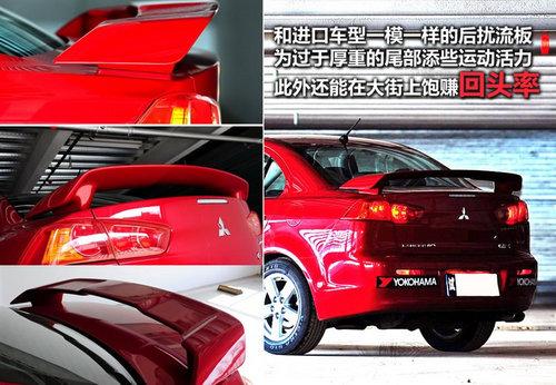 藍瑟·翼神在外型上不缺乏亮點,最為引人注目的是家族式“鯊魚嘴”進氣口,不過在國產(chǎn)后,原來的大嘴被一分為二,視覺沖擊力明顯下降。而高配車型的后擾流板和進口車型一模一樣,其夸張的造型絕對可以吸引眼球。
