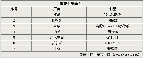 西部最具規(guī)模和影響力的2010第十三屆成都國(guó)際車展,將于9月18日-24日在成都世紀(jì)城新國(guó)際會(huì)展中心隆重舉行,主題為“綠色科技 樂駕成都”。雖然成都車展的影響力不及北京、上海、廣州,但西部尤其是四川汽車市場(chǎng)需求相當(dāng)旺盛,在本屆車展上將有7款不同類型的新車首發(fā)。