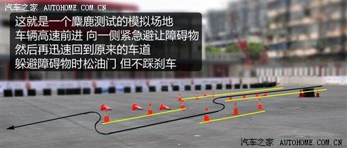 第二個(gè)項(xiàng)目是大家經(jīng)常見到的“麋鹿測(cè)試”。在歐洲和北美,經(jīng)常會(huì)有麋鹿一類大型哺乳動(dòng)物突然跳上公路,應(yīng)對(duì)這種情況的緊急避讓并且回到原車道的動(dòng)作,就是麋鹿測(cè)試的過程。如果有ESP的幫助,車輛的極限會(huì)更高,失控的可能性會(huì)相對(duì)降低。當(dāng)然需要提醒大家的是,這種測(cè)試的時(shí)速一般不會(huì)超過70km/h,如果用更高的速度來做這個(gè)動(dòng)作,再先進(jìn)的裝備也很難保證不失控。