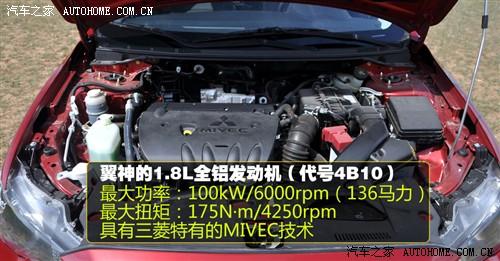翼神的1.8L全鋁發(fā)動機(代號4B10)和2.0的一樣都是進口的,最大功率100kW/6000rpm(136馬力),最大扭矩175N·m/4250rpm,具有三菱特有的MIVEC技術。變速箱方面則沒有變化,依然搭配的是5速手動或6速INVECS-III CVT變速箱。