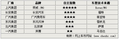 從上表可以看出,坐擁大眾和通用兩個合資品牌的上汽,無疑是自主之路走得最好的,在買斷ROVER先期打造了榮威750、550等車型,而后續(xù)推出的則是全新技術(shù)的車款比如350。而廣汽作為新的加入者,近日下線了傳祺新車,雖然新車源自菲亞特旗下的阿爾法羅密歐,但還是進(jìn)行了不少改進(jìn),并沒有完全照搬過來。而獲得兩星的一汽集團(tuán),其奔騰系列車型B50、B70依然是來源馬自達(dá)6,經(jīng)過了這么年的發(fā)展,僅僅是換個外觀就宣稱自主研發(fā)是很難讓人接受的,一汽集團(tuán)還需努力捍衛(wèi)老大的地位。