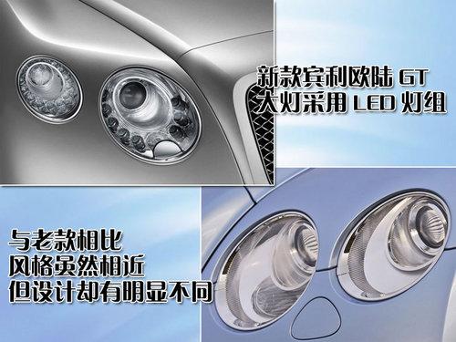 而且2012款賓利歐陸GT采用一大一小前大燈組合方式,并且采用了LED燈組設(shè)計(jì),與老款相比雖然風(fēng)格相近,但設(shè)計(jì)方式卻有明顯不同。另外,2012款賓利歐陸GT的前進(jìn)氣格柵與保險(xiǎn)杠處格柵都采用加深顏色設(shè)計(jì),比老款車型更加大氣。2012款賓利歐陸GT采用了全新的五幅式輪轂造型,比老款的九幅式造型更加精練。