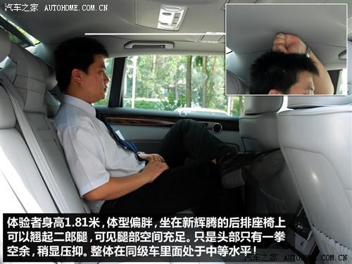 如果你是輝騰的車主那么一定更愿意坐在后排,那么乘坐空間肯定是第一位的,身高181cm的體驗(yàn)者坐在后排腿部的縱向很充裕,但是受到車頂造型的影響頭部空間沒有想象的大有一拳左右,不過這樣的空間表現(xiàn)如果乘客不是過于挑剔應(yīng)該可會(huì)滿意。