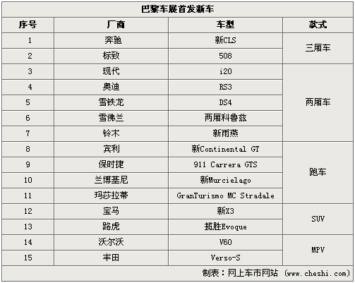 2010巴黎車(chē)展將于9月底正式開(kāi)幕,本屆車(chē)展新車(chē)云集,數(shù)十款新車(chē)將在車(chē)展全球首發(fā),包括奔馳、寶馬、標(biāo)致等歐洲本土廠商,也有雪佛蘭、豐田等海外廠商。而這次在開(kāi)幕前我們所盤(pán)點(diǎn)的是巴黎車(chē)展首發(fā)后將引入國(guó)內(nèi)銷(xiāo)售的新車(chē),預(yù)計(jì)將有15款首發(fā)車(chē)后續(xù)引入。