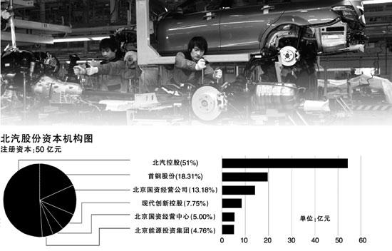 北京國(guó)資經(jīng)營(yíng)公司、現(xiàn)代創(chuàng)新控股、北京國(guó)資經(jīng)營(yíng)中心、北京能源投資集團(tuán)分別以14.03億元、8.26億元、5.32億元、5.06億元的總出資額持有北汽股份13.18%、7.75%、5.00%、4.76%的股份。