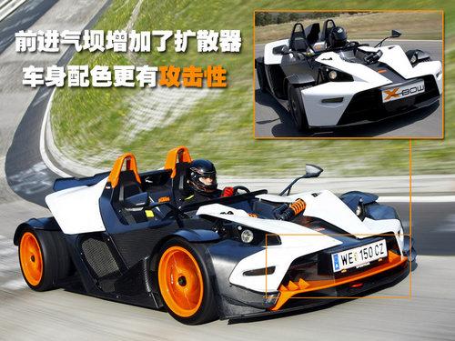 KTM將提供兩套不同的選裝套件,分別為運(yùn)動(dòng)套裝和競(jìng)速套裝給不同的客戶。每個(gè)套裝都包含一套全新開發(fā)的組件,使得不通路況和駕駛都能將性能充分發(fā)揮。而套裝的每個(gè)單一組件也都可以加裝至KTM x-bow的其它款型上,以滿足目前所有KTM用戶的個(gè)性化需求。新款車型前進(jìn)氣壩改進(jìn)了造型,增加了擴(kuò)散器,梳理氣流為前剎車機(jī)構(gòu)降溫,能夠看到明顯與老款不同,透出一種殺氣。