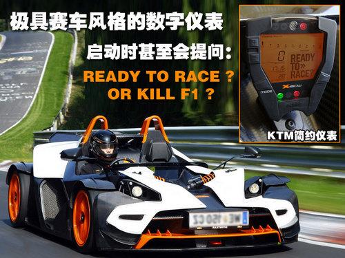 R版本經(jīng)過對(duì)引擎位置的重新設(shè)定,導(dǎo)致整車有著更低的重心,這樣使得它擁有更高的過彎速度,更加貼地的車身和更精準(zhǔn)的駕駛精度。老款KTM X-BOW車重700公斤 0-160公里每小時(shí)提速時(shí)間僅僅為3.9秒。F1賽車可以在2.5秒內(nèi)從0加速到100公里每小時(shí)。算起來,X-BOW R更輕的車身,更強(qiáng)大的引擎輸出,想超越F1賽車,并不是件難事。