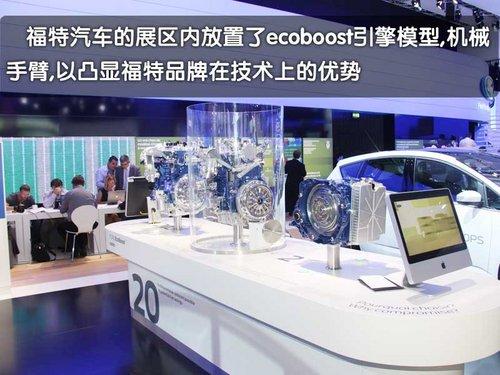 福特汽車在這次巴黎車展現場從面積上來說還是不小的,但是在展區(qū)內的設計以及各個展示區(qū)域的布局上與國內近兩次大型國際車展的布局和功能沒有區(qū)別。由于福特正在積極宣傳他們的ECOboost增壓加直噴引擎,所以福特展區(qū)內引擎占據了重要的位置。