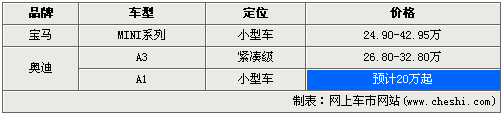 A1是奧迪第一款針對(duì)A0級(jí)(小型車)推出的車型,定位低于剛剛在國(guó)內(nèi)上市的全新A3。奧迪A1的主要競(jìng)爭(zhēng)對(duì)手瞄準(zhǔn)了寶馬旗下的MINI系列車型,兩者同樣定位于高品質(zhì)的小型車級(jí)別,宿敵之間的正面火拼也將在該款車型進(jìn)入中國(guó)以后全面展開。