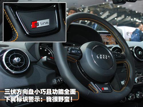 方向盤是車主最長接觸愛車的地方,A1也把這里當(dāng)作彰顯它特堵特性的位置。真皮包裹的質(zhì)感很棒,橙色的縫線經(jīng)過內(nèi)側(cè)輪廓得到強(qiáng)化。兩個(gè)側(cè)翼設(shè)計(jì)有多功能按鍵,為用戶提供了方便安全的操作,下翼吧“S line”標(biāo)識再次嵌入,時(shí)刻提醒駕駛者這臺A1擁有著不平凡的身份和勁道。